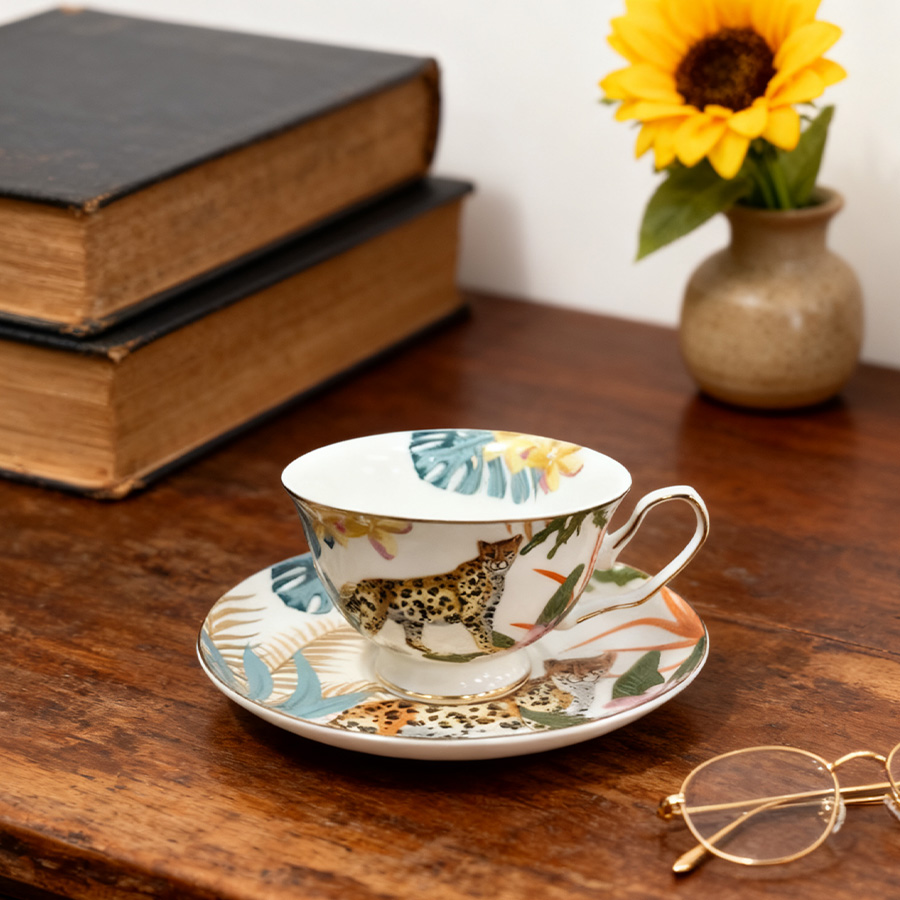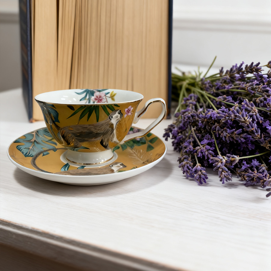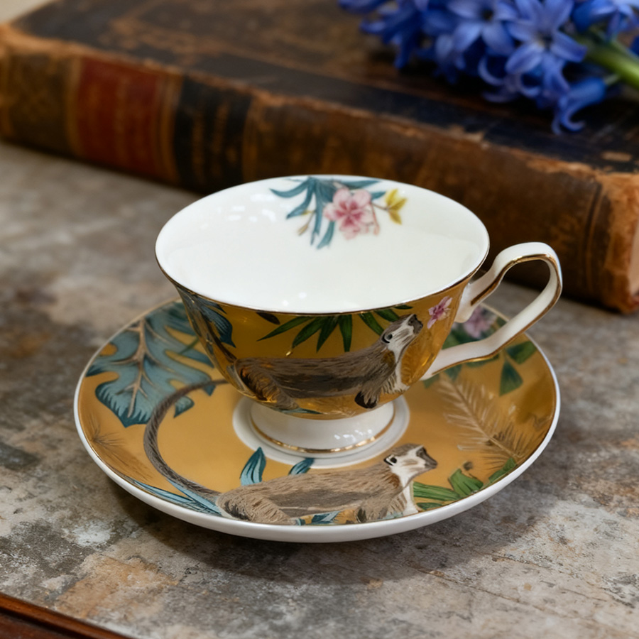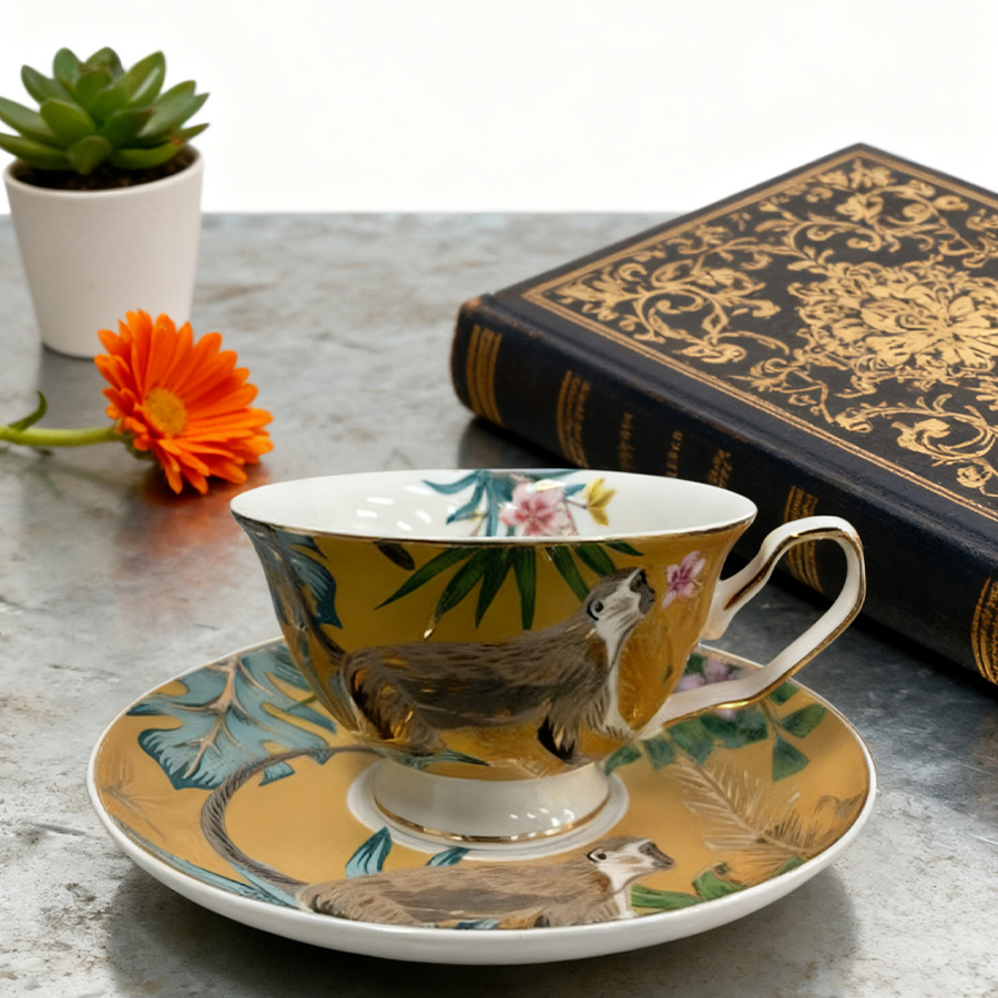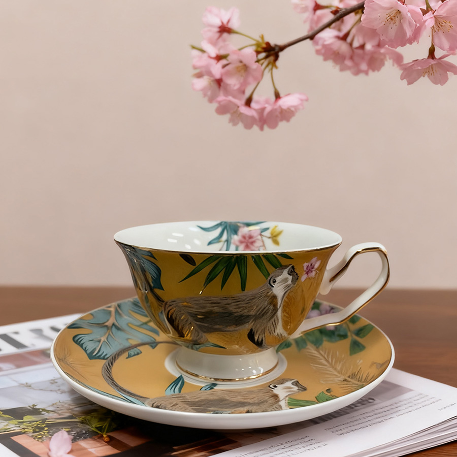 杯碟 描金动物