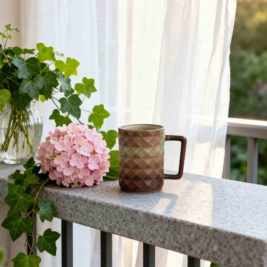 陶瓷杯 浮雕碎花