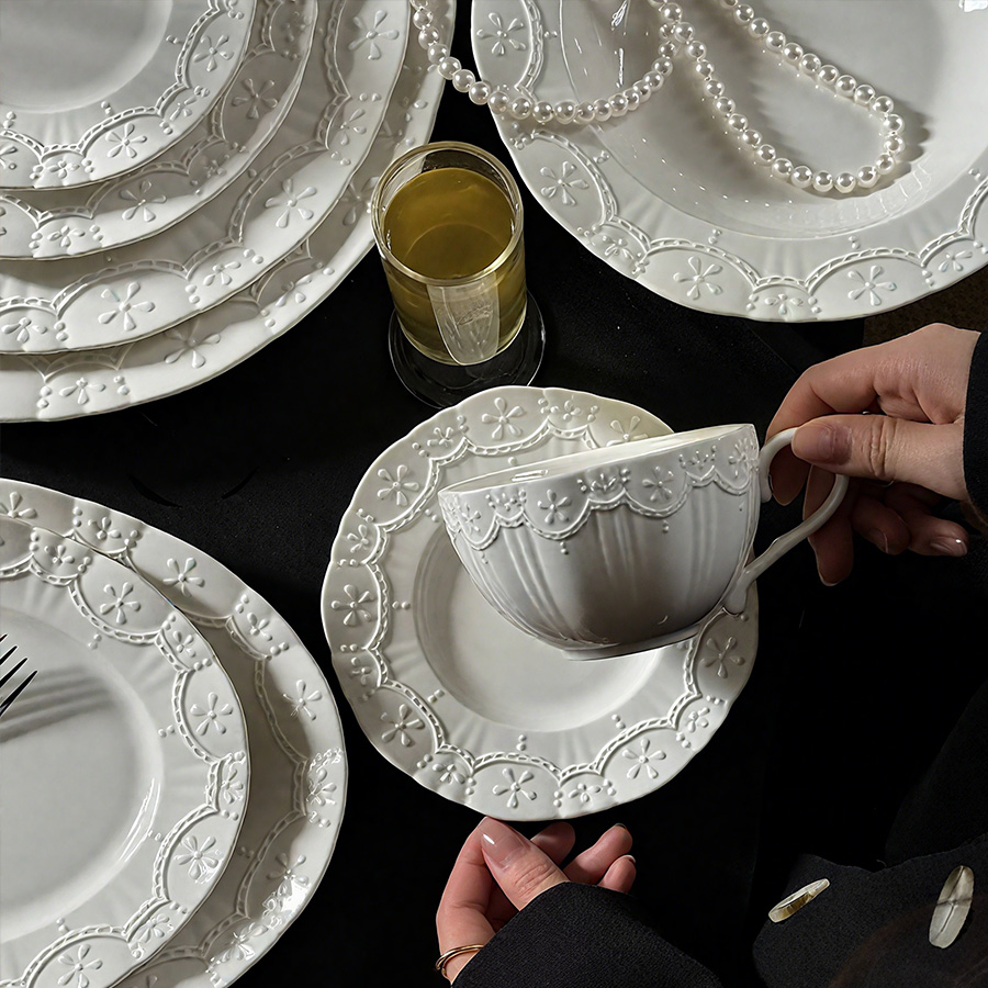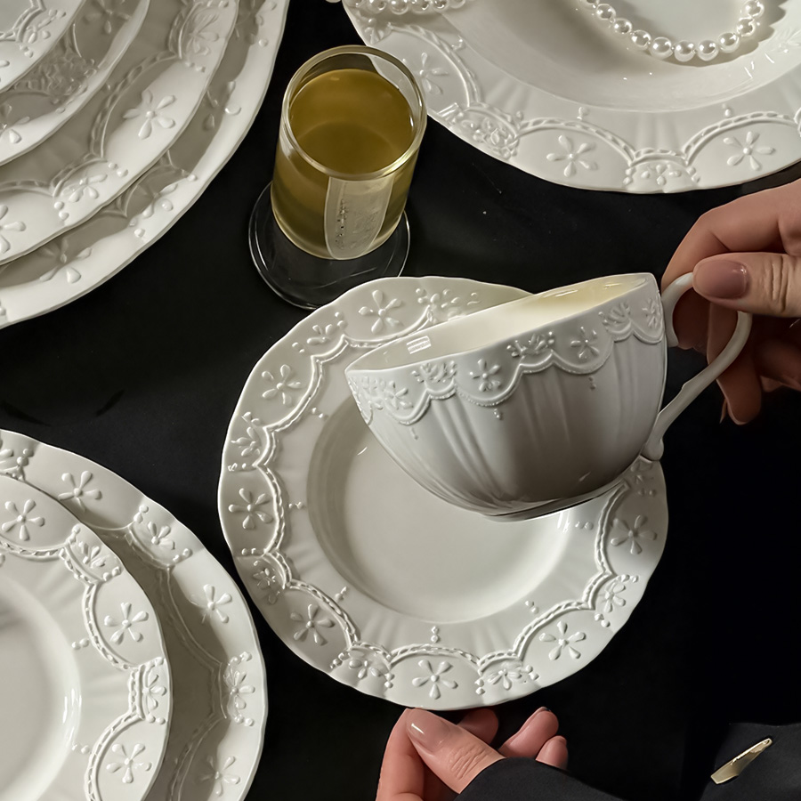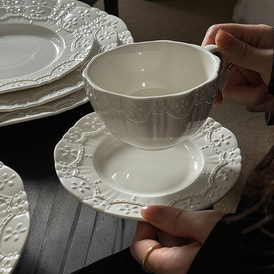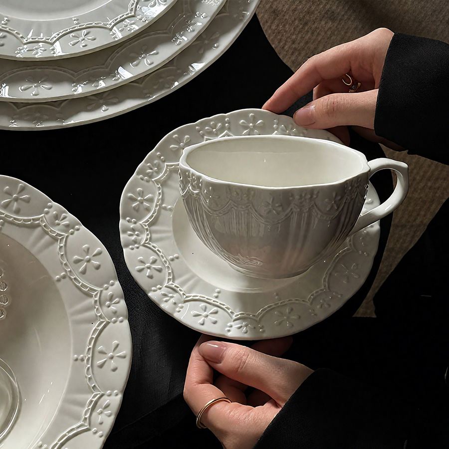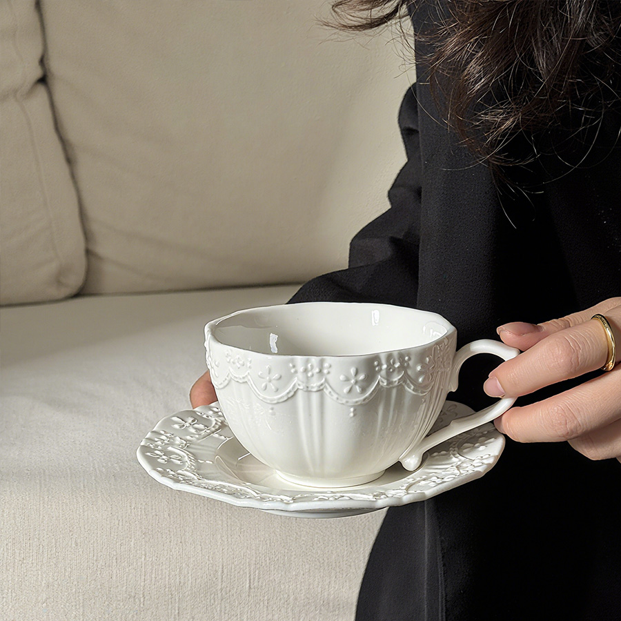 陶瓷杯 浮雕碎花