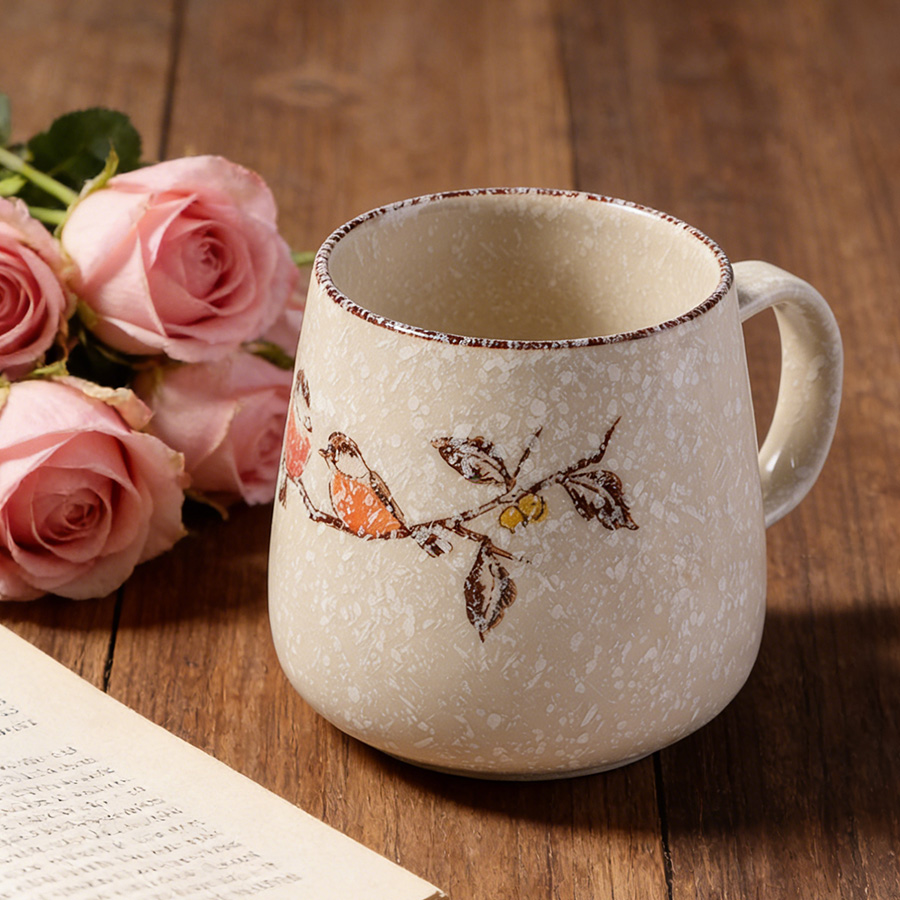 陶瓷杯 浮雕碎花