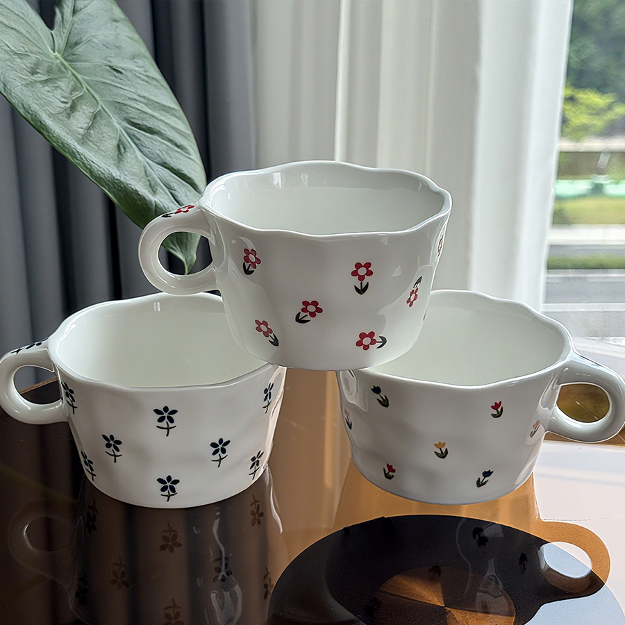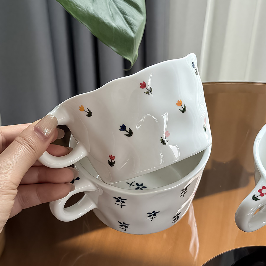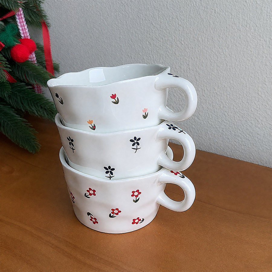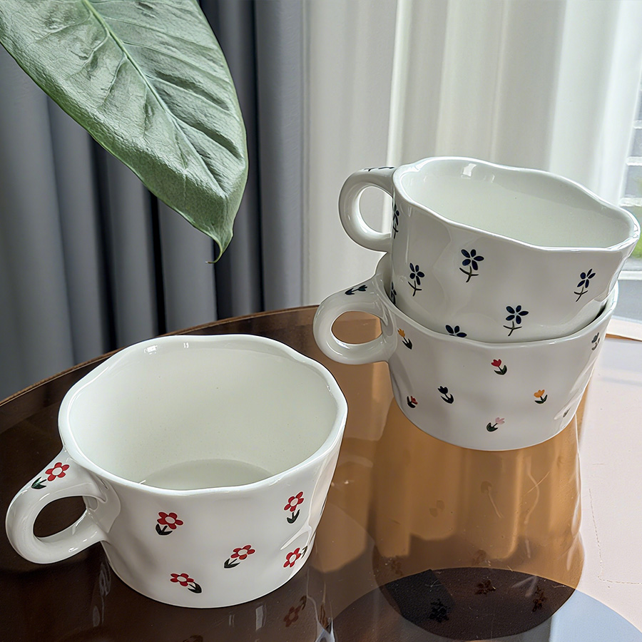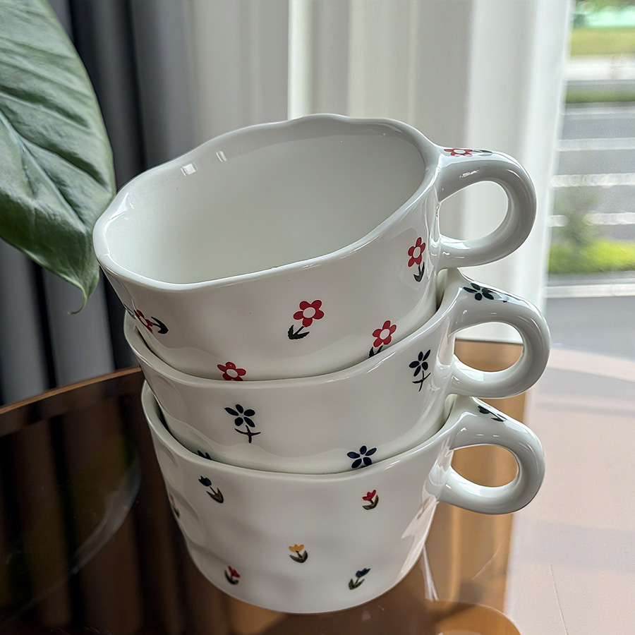 陶瓷杯 浮雕碎花