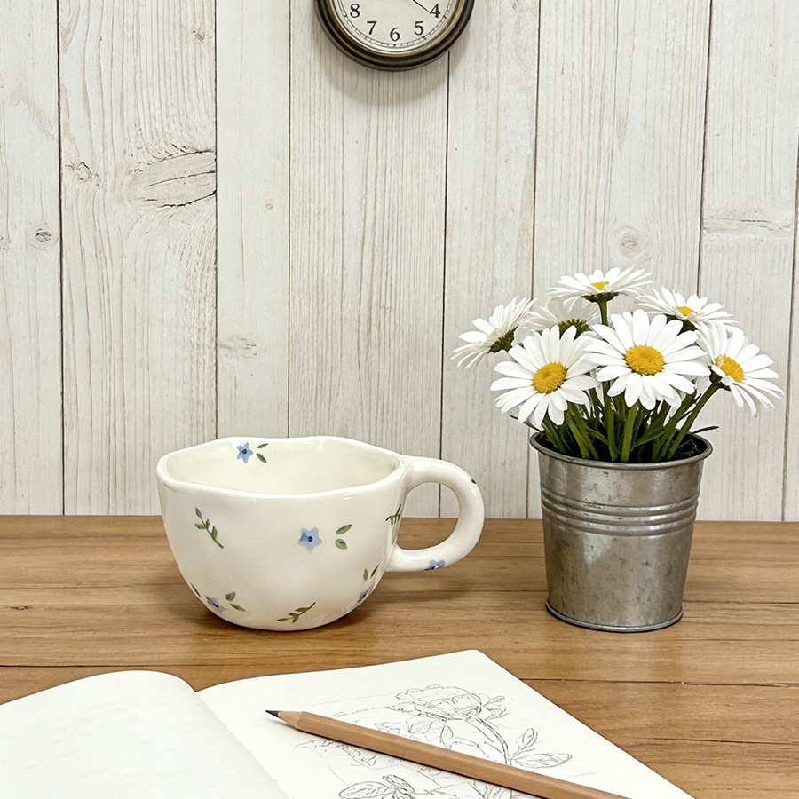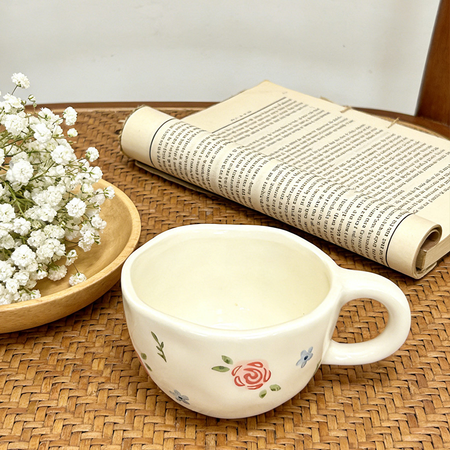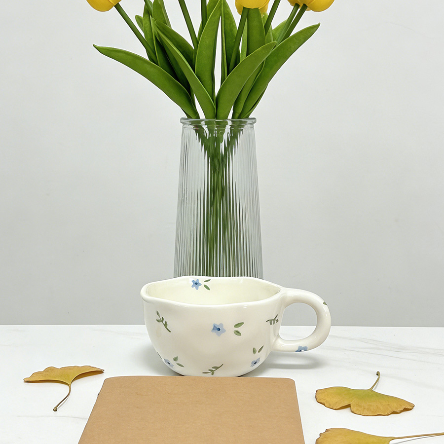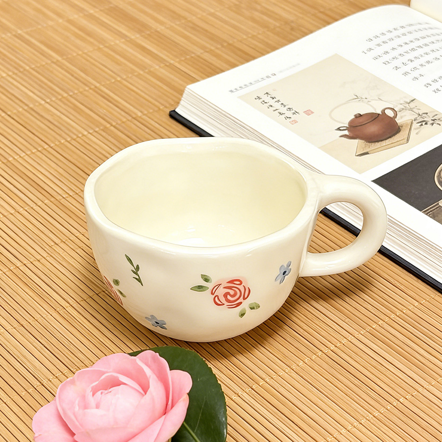 陶瓷杯 浮雕碎花